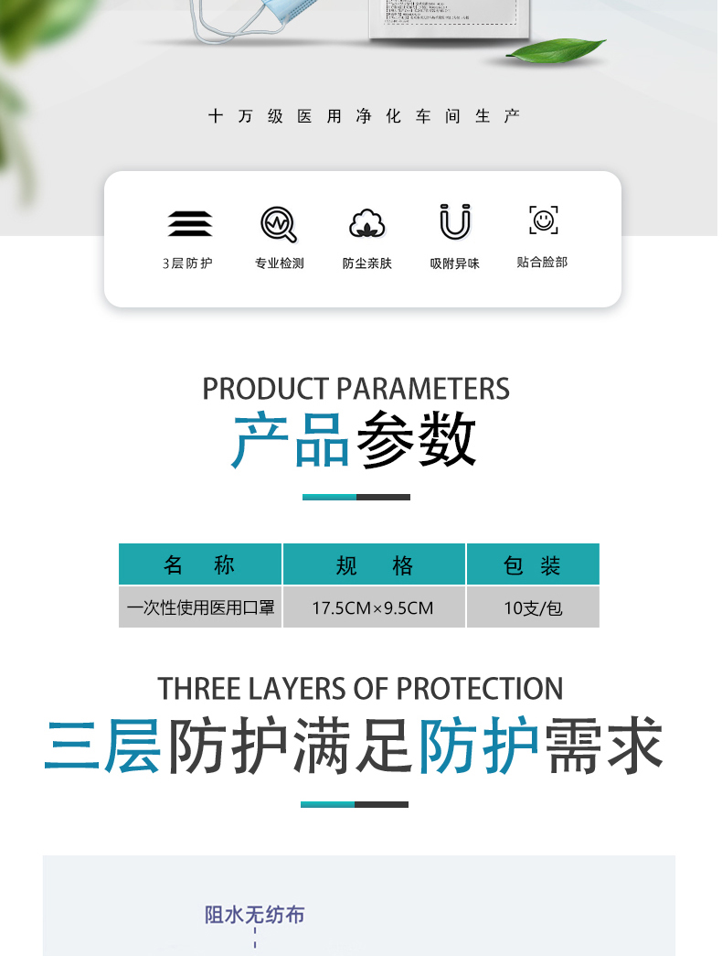 【結構組成】一次性使用醫用口罩由口罩體、鼻夾和口罩帶組成,口罩體由無紡布和熔噴布制成。一次性使用醫用口罩在10萬級潔凈間生產,未經消毒處理微生物指標符合技術要求。