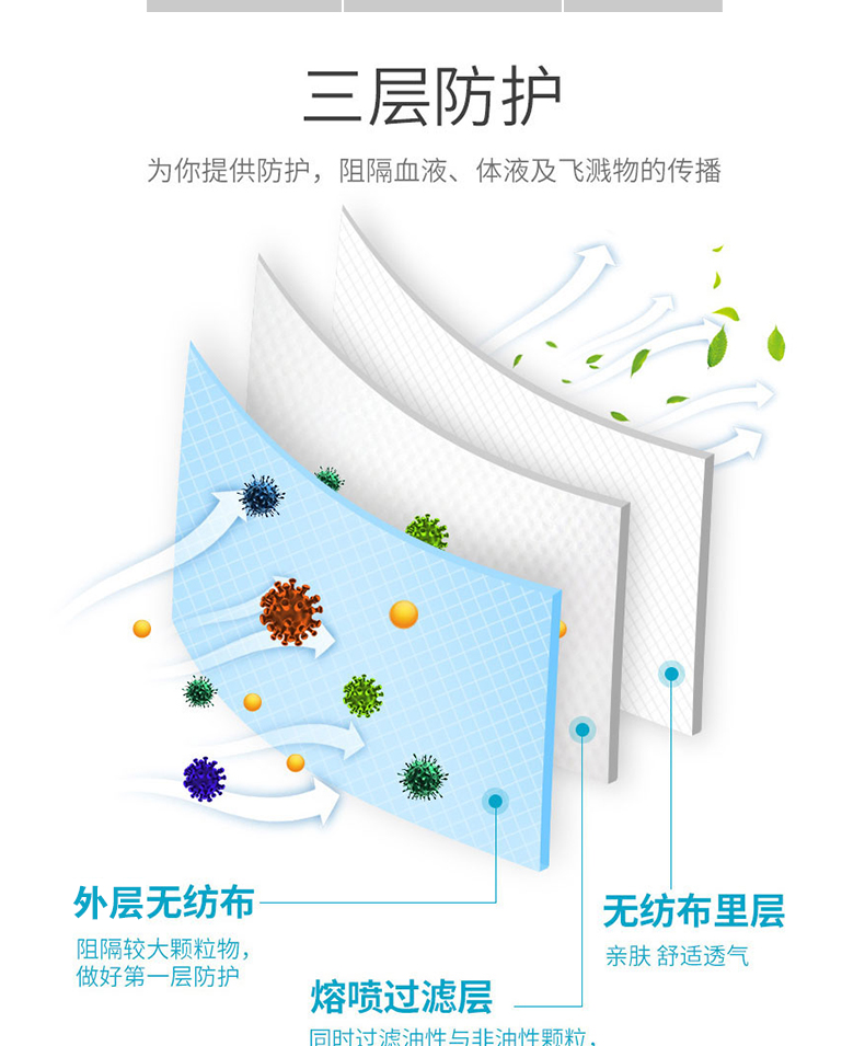 【適用范圍】醫用外科口罩適用于醫務人員或相關人員的基本防護,以及在有創操作過程中阻止體液和噴濺物傳播的防護。